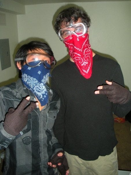 A friend and I dressed as “an unlawful assembly” that Halloween, trying to find humor in what we’d been through.