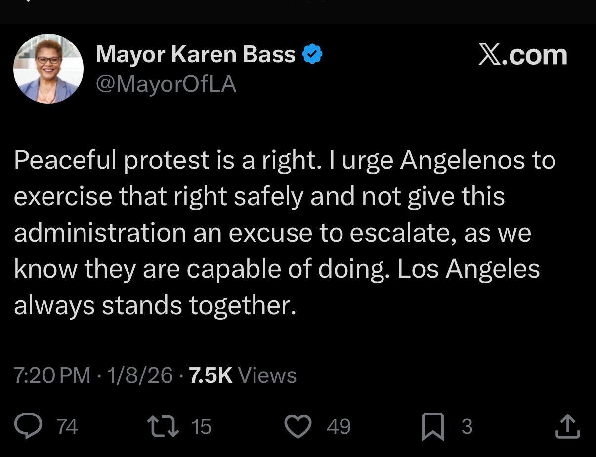 Six minutes later, LA Mayor Karen Bass tweeted: